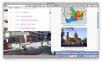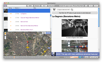 World Explorer te permite navegar por la Wikipedia usando los enlaces del artículo que se muestra en ese momento, así como ver los mapas al estilo Street View.
